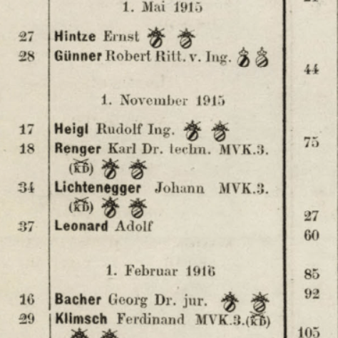 1915 schließlich stieg er zum Rang eines Oberleutnants auf und diente seinem Regiment im Ersten Weltkrieg. Für seine Verdienste erhielt er die silberne sowie die bronzene Militärverdienstmedaille verliehen.