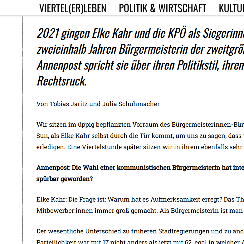 Im Zuge des Studiums habe ich einige Artikel für die Grazer Stadtteilzeitung annenpost.at zu verschiedensten Themen geschrieben. Hier die Links, um meine Arbeit genauer anzusehen: